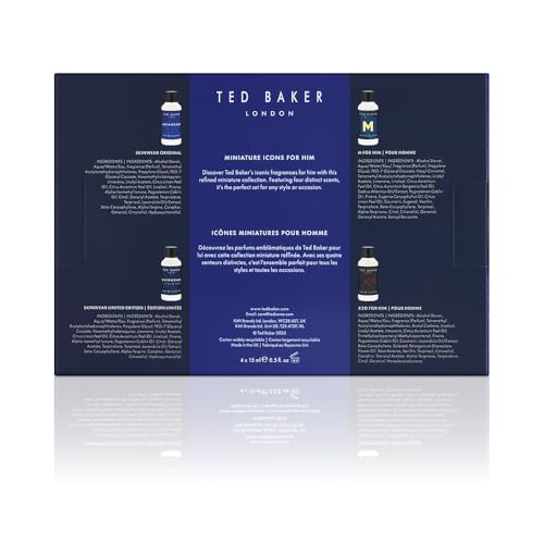 The Ted Baker Men’s Mini Perfume Gift Set features 4 x 15ml miniature perfumes: Skinwear, Skinwear Limited Edition, M, and X20. This set offers a perfect mix of scents, from refreshing citrus to warm, woody notes, ideal for daily wear or special occasions. The mini perfume set is compact, travel-friendly, and comes in a stylish gift box, making it an excellent gift set for men.