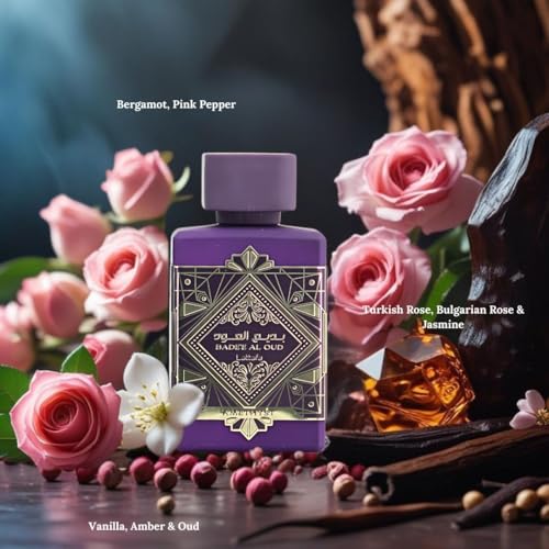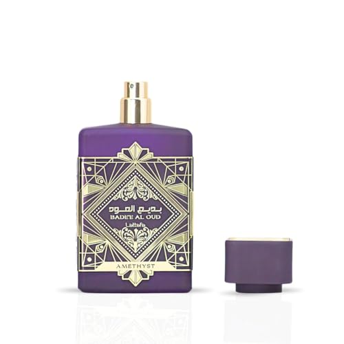 This perfume presents a unique blend of classic spices and florals overlaid the prominent base of sweet vanilla and oud while also offering you the classic notes of rose, jasmine, and bergamot. Perfume Oud For Glory Amethyst – Bade’e Al Oud Amethyst Eau de Parfum by Lattafa Perfumes is a warm fragrance with vanilla, amber and roses. The top note starts with spicy pink pepper and fresh bergamot. The heart note is floral with Turkish roses, Bulgarian roses and jasmine. Oudh, vanilla and amber perfectly round off the perfume in the base. Bade’e Al Oud Amethyst is an exceptionally successful blend of roses, Oudh and warm notes that is very suitable for any occasion. Top Notes: Bergamot & Pink Pepper Heart Note: Turkish Rose, Bulgarian Rose, & Jasmine Base Notes: Vanilla, Amber, & Oud